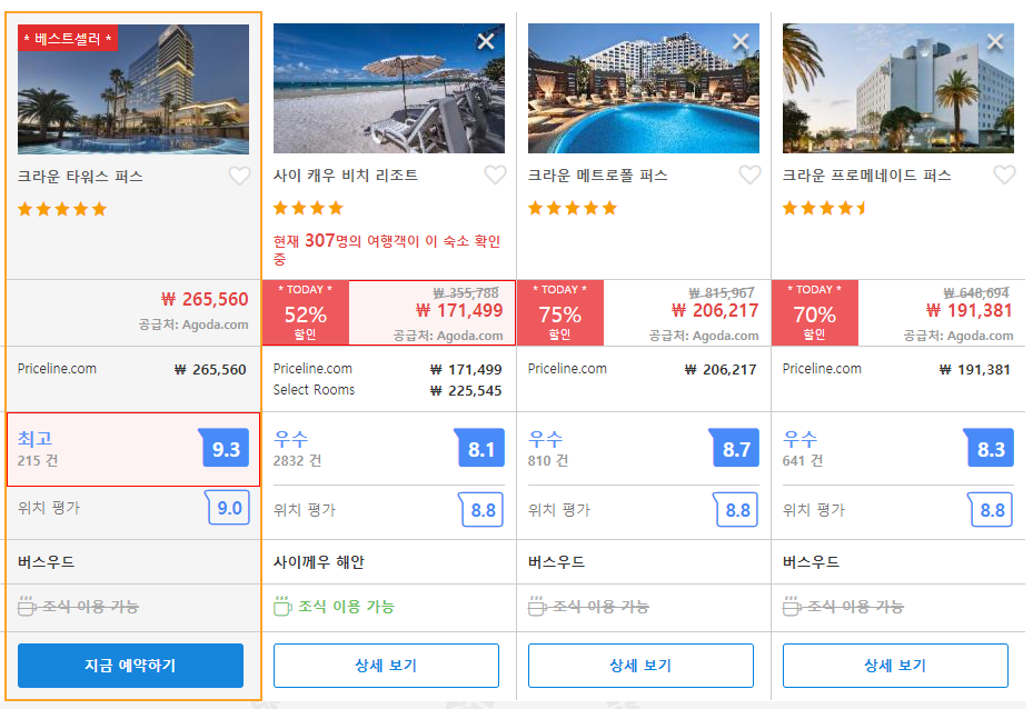 크라운 타워스 퍼스 호텔의 최저 가격대는 아고다에서 할인특가 가격으로 매일매일 변동되며 40만원대부터 다양하게 형성됩니다. 아고다 최저가를 확인하시려면 아래 링크를 누르시면 원하는 날짜의 가격대를 자세히 보실 수 있습니다.