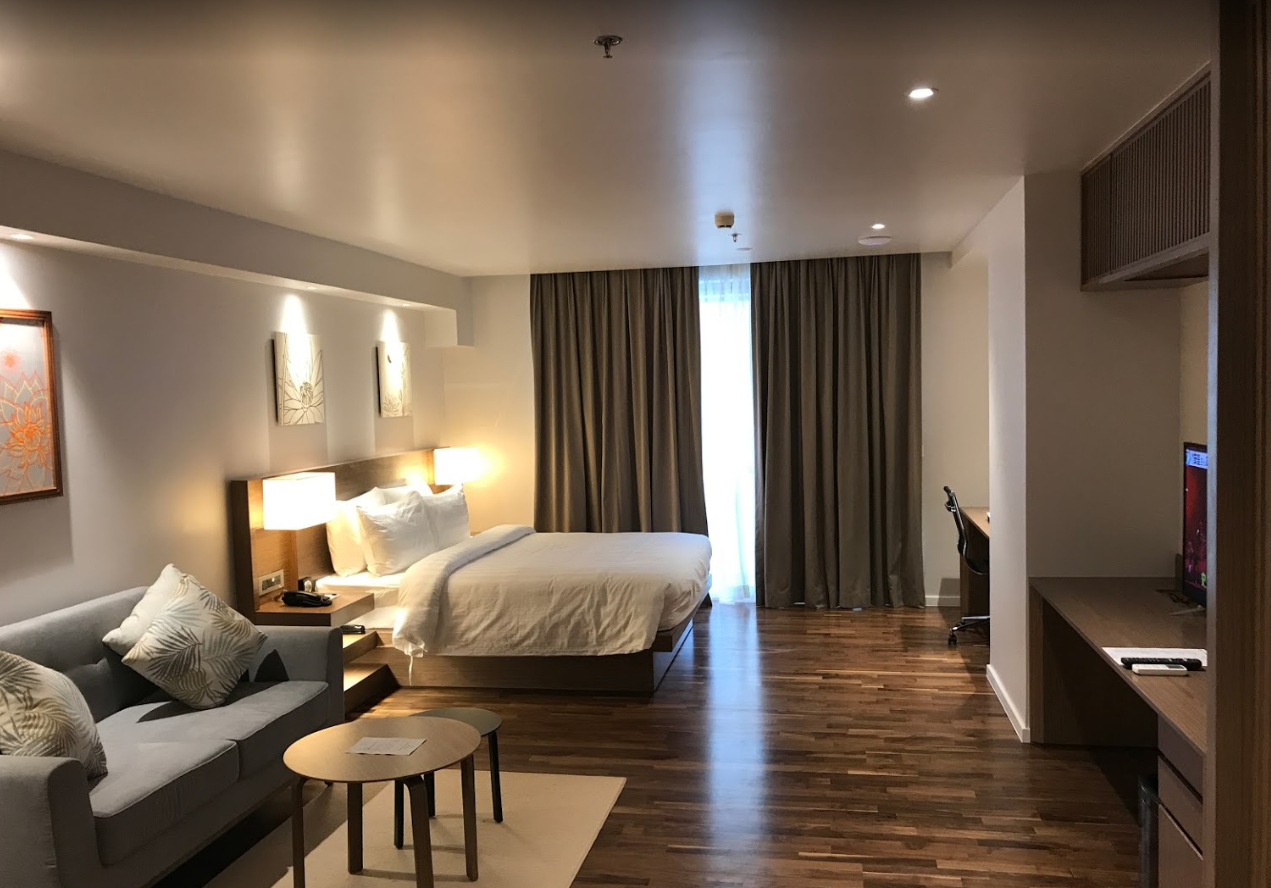 깨끗해여 넓구 에어컨 빵빵히 나와요 조용하구요, 포트기 있고 냉장고 큰 냉장고에 전자렌지 있어요. 욕조 넓구요. 화장실 자체도 커요... 하루 10마넌 정도로 결제 되었는데 가격대비 만족합니다.