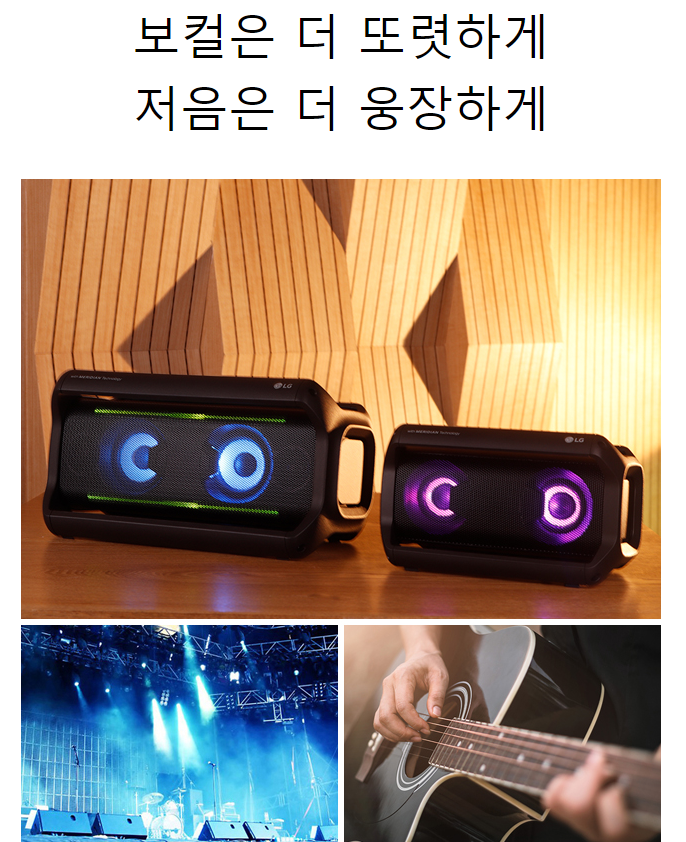 선명하게 들리는 사운드를 제공하여 더욱 좋은 LG 엑스붐 고 블루투스 스피커로 풍부한 사운드의 음악을 즐겨보세요!