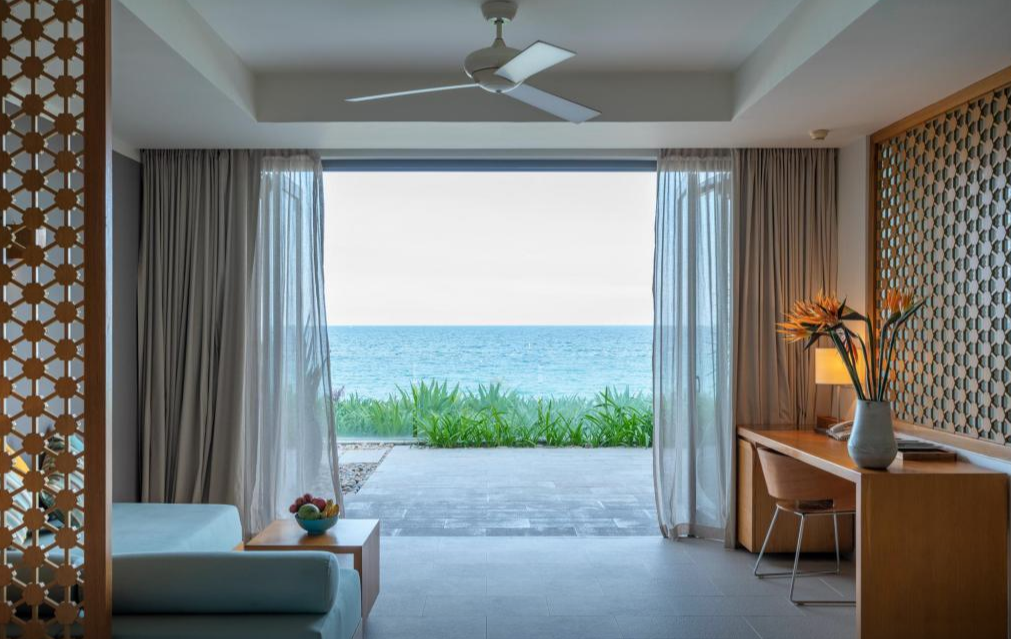 리조트에 들어서면 먼저 푸른 정원과 열대 식물들이 반겨주고, 바다의 아름다운 풍경이 눈앞에 펼쳐져요. 대부분의 객실에서는 멋진 바다 전망을 감상할 수 있는데, 특히 개인 풀장이 있는 빌라는 프라이빗한 시간과 여유를 즐기고 싶은 분들에게 정말 좋답니다. 객실 내부는 넓고 아늑하게 꾸며져 있어서, 편안한 분위기 속에서 완벽한 휴식을 취할 수 있어요.