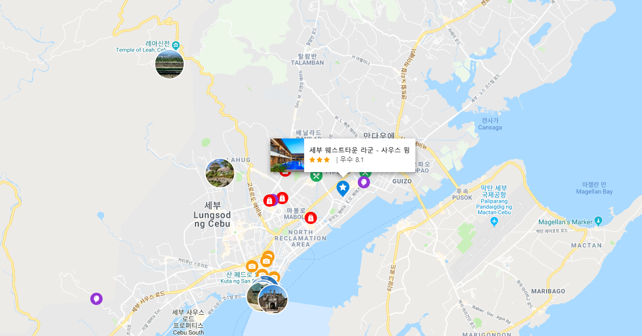 세부의 쇼핑, 레스토랑, 비즈니스 지역에서 양질의 숙박을 제공하는 세부 웨스트타운 라군 - 사우스 윙호텔 (Cebu Westown Lagoon - South Wing)은 비즈니스와 레저 여행객 모두에게 인기가 좋습니다. 이 곳에서 생동감 넘치는 도시의 많은 것을 최대로 즐길 수 있습니다. 본 숙소는 도시의 필수 관광 명소에 손쉽게 접근할 수 있는 편리한 위치를 자랑합니다.