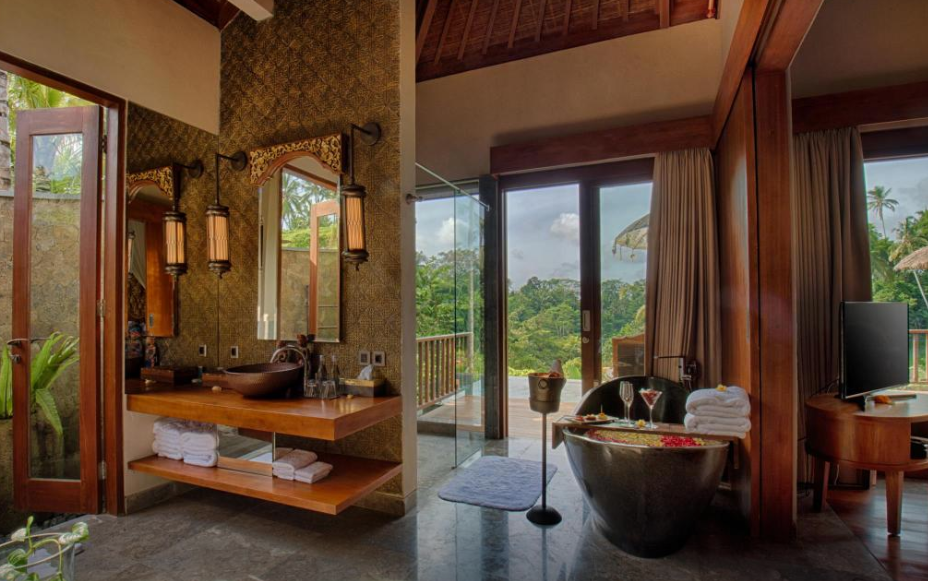 객실은 전통 발리 스타일로 꾸며져 있는데, 아늑하면서도 세련된 느낌이 듭니다. 넓은 발코니에서 멋진 풍경을 바라보며 커피 한 잔의 여유를 즐길 수 있는 점이 특히 좋아요. 현대적인 편의시설도 잘 갖춰져 있어서 편안하게 지낼 수 있습니다.