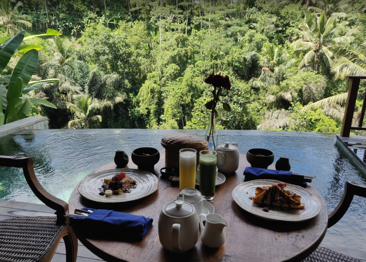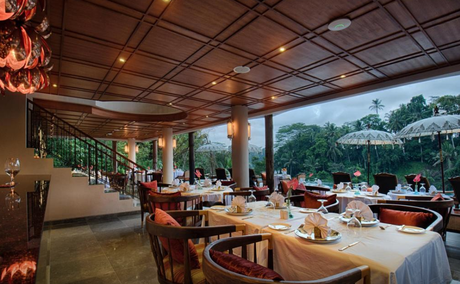 그리고 식사도 놓칠 수 없죠. 리조트 내 레스토랑에서는 신선한 지역 재료로 만든 다양한 요리를 맛볼 수 있어요. 아침에는 신선한 과일과 빵, 그리고 다양한 에그 요리가 제공되어 하루를 활기차게 시작할 수 있습니다. 저녁에는 우붓의 멋진 일몰을 배경으로 로맨틱한 저녁 식사를 즐길 수 있어요.