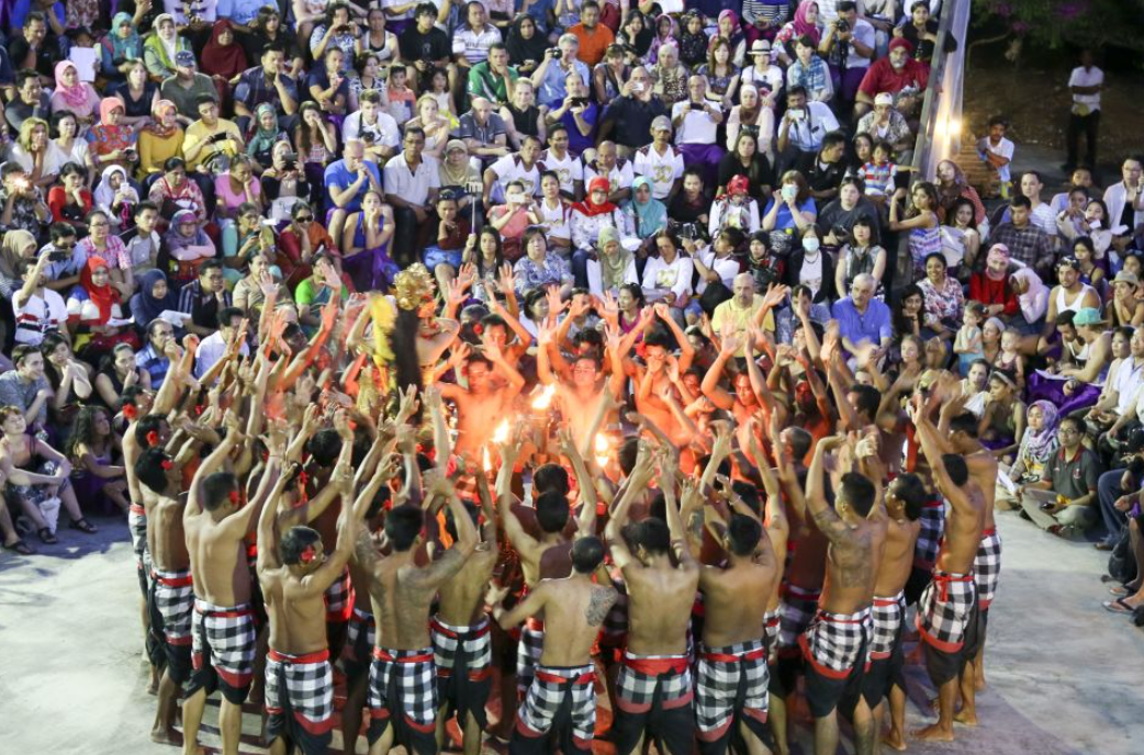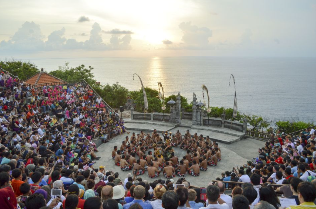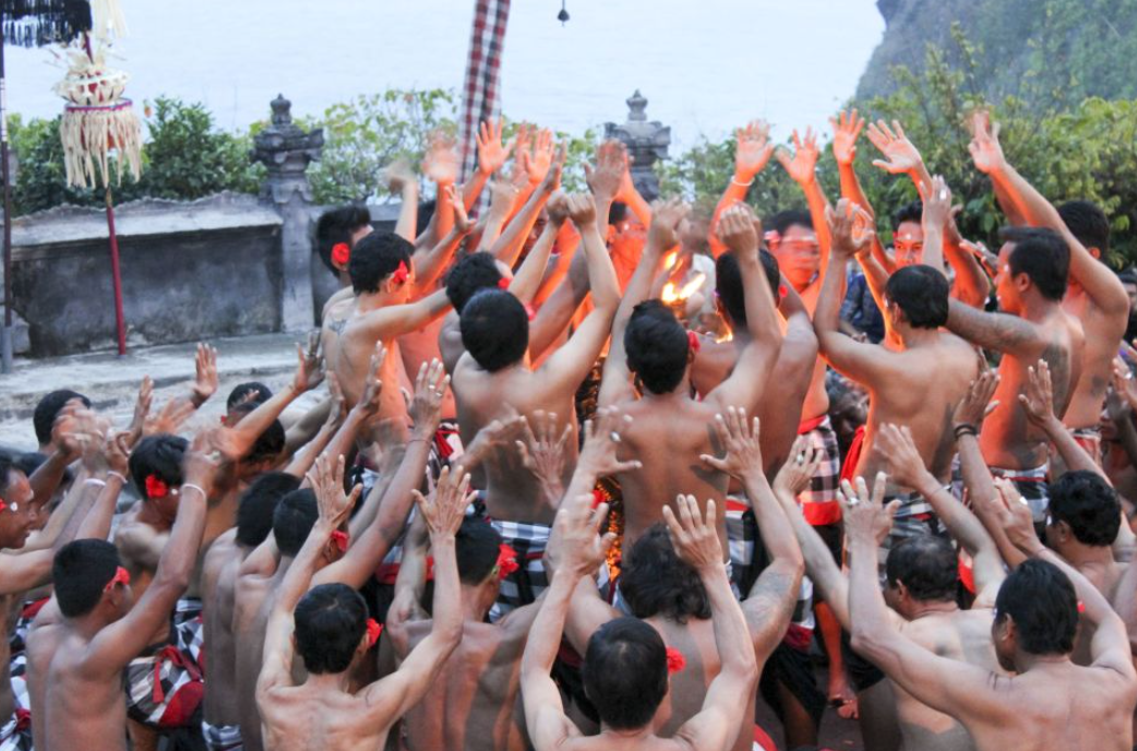 사원에 인접한 절벽에서 공연되는 신성한 "케짝" 불춤을 감상하세요.