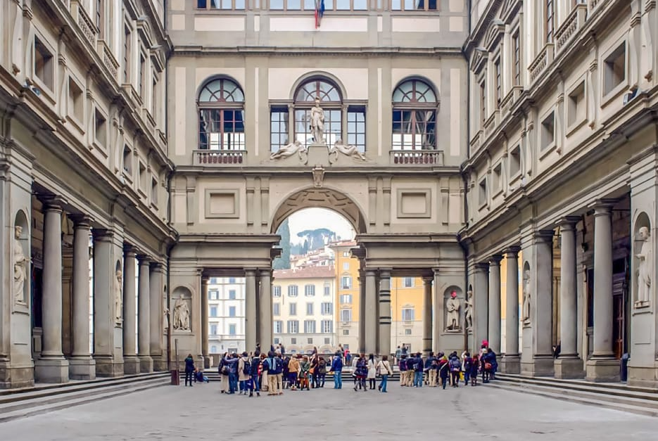 피렌체여행에 우피치 미술관(Uffizi) 우선입장 티켓을 예약하고 기다리지 않고 바로 입장하여 시간을 절약하세요. 미술사에서 가장 유명한 비너스, 레오나르도 다빈치의 가장 수수께끼 같은 그림 중 하나 또는 미켈란젤로의 유일한 목조 걸작을 감상해 보세요.~