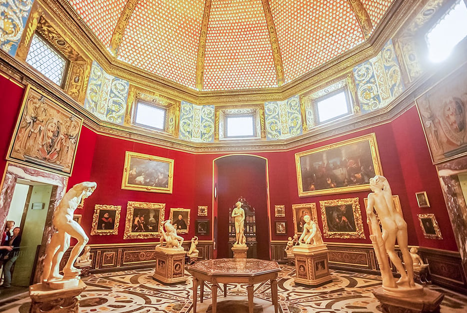 그런 다음 유럽에서 가장 오래된 박물관 중 하나를 둘러보세요. 중세부터 이탈리아 르네상스까지 예술의 역사를 여행해 보세요. 보티첼리의 "비너스의 탄생", 카라바조의 "메두사", 미켈란젤로가 유일하게 나무로 그린 그림과 같은 걸작에 감탄해보세요.
