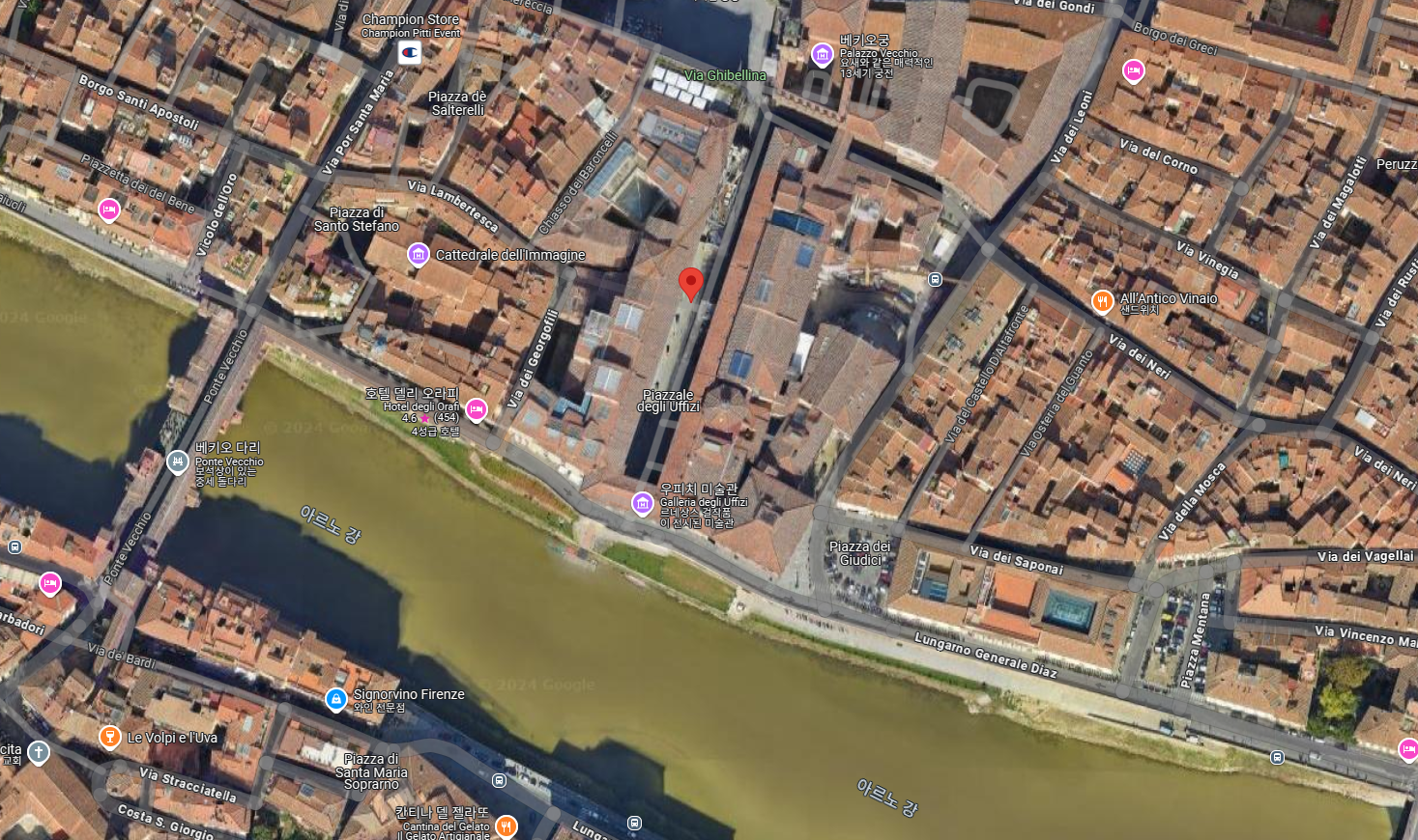 또 하나의 매력은 미술관의 위치에요. 피렌체의 중심부에 있어서 아르노강의 멋진 풍경을 감상하면서 미술관을 방문할 수 있어요. 미술관의 창문을 통해 보이는 강의 모습은 예술 감상과 함께 자연의 아름다움을 동시에 느낄 수 있게 해주죠.