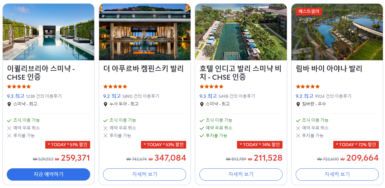 가성비최고입니다!!근처에 맛집 및 유명한 곳많구요 직원들 친절 당연합니다! 발리오면다시 장문하고싶습니다!