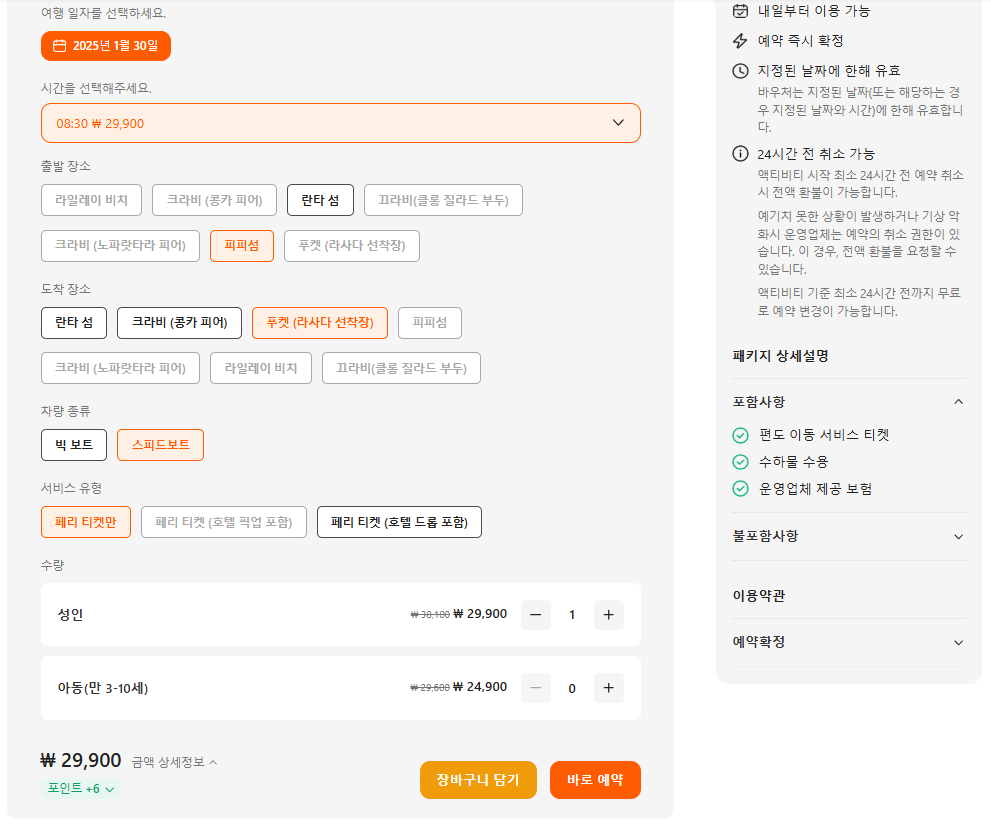 피피섬과 푸켓 스피드보트 교통편은 클룩사이트에서 쉽게 예약하실 수 있으며, 이메일, 전화번호, 카카오톡, 네이버, 구글, 애플, 페이스복 등으로 간편하게 회원가입하고 이용하실 수 있습니다. 가격은 변동될 수 있으므로 예약시 다시 확인하고 이용하세요~