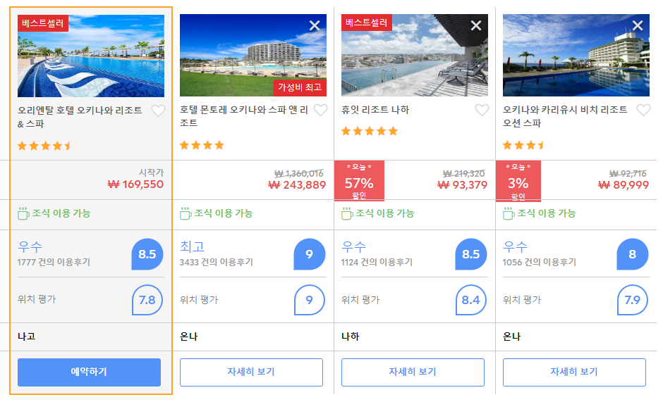 오리엔탈 호텔 오키나와 리조트앤스파 (Oriental Hotel Okinawa Resort & Spa)의 최저 가격대는 아고다웹사이트에서 할인특가 가격으로 매일매일 변동되며 10만원대부터 다양하게 형성됩니다. 날짜별로 매일 가격이 다르므로 아고다웹사이트 최저가를 확인하시려면 아래 링크를 누르시고 원하는 날짜의 가격대를 선택해야 정확한 가격을 자세히 보실 수 있습니다.