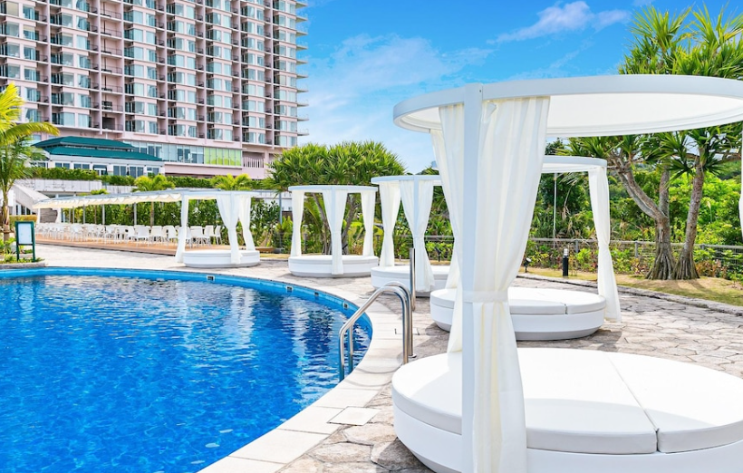 오키나와의 야외수영장 및 레스토랑과 바를 갖춘 오키나와리조트로 헬스장, 스파, 실내수영장 등 다양한 부대시설을 갖추고 있는 오리엔탈 호텔 오키나와 리조트앤스파 (Oriental Hotel Okinawa Resort & Spa)는 가성비 최고 오키나와 중북부 호텔로 아름다운 오션뷰전망을 자랑하며 객실은 물론 모든 공간이 넓고 간이주방이 있으며 거실과 월풀욕조가 마련된 스위트룸을 갖춘 V자형 15층 높이의 고급 리조트입니다.