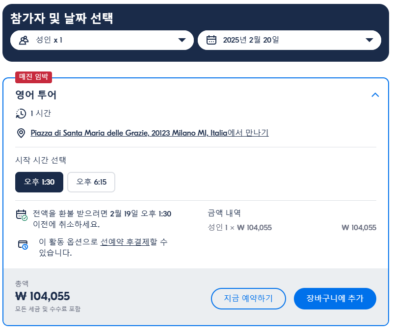 밀라노 다빈치의 최후의 만찬 가이드 투어 포함사항