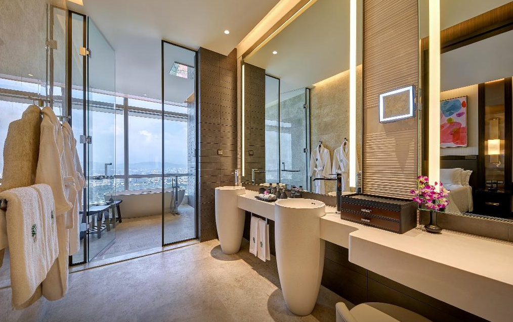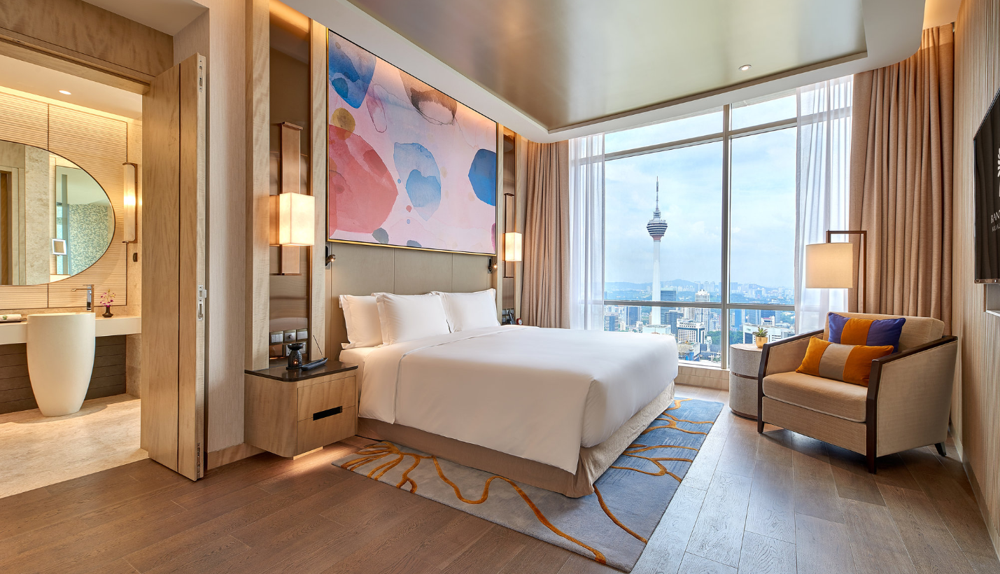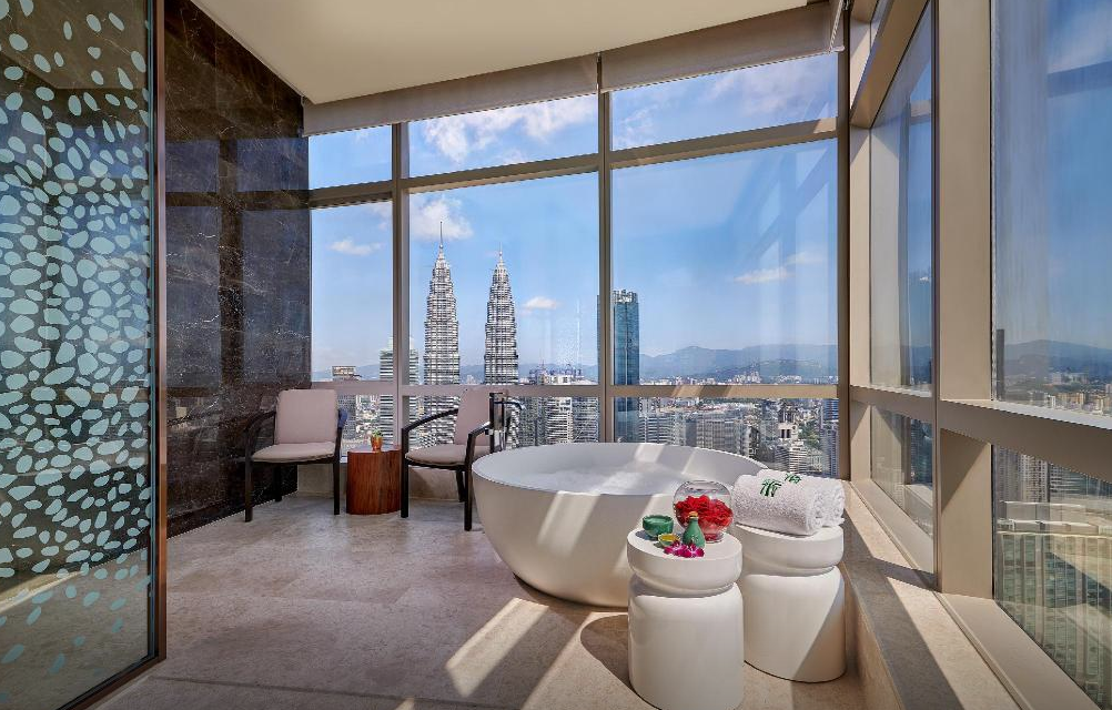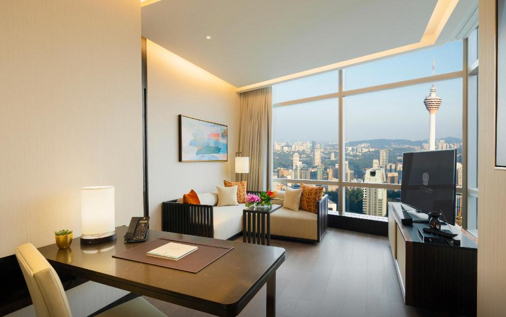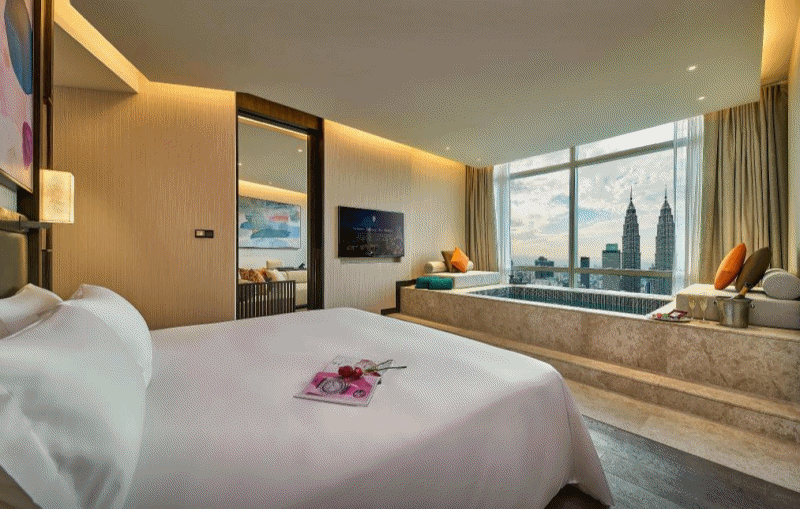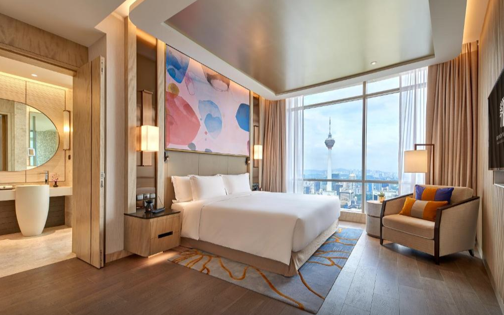 호텔의 외관은 세련되고 현대적이며, 고층 건물로서 도심의 스카이라인을 아름답게 형성합니다. 특히, 호텔의 객실은 넓고 아늑한 공간으로 꾸며져 있어, 편안한 휴식을 취할 수 있습니다. 각 객실에서는 쿠알라룸푸르의 breathtaking한 전경을 감상할 수 있으며, 특히 밤에는 도시의 화려한 야경이 눈앞에 펼쳐져 마치 그림 같은 풍경을 선사합니다.