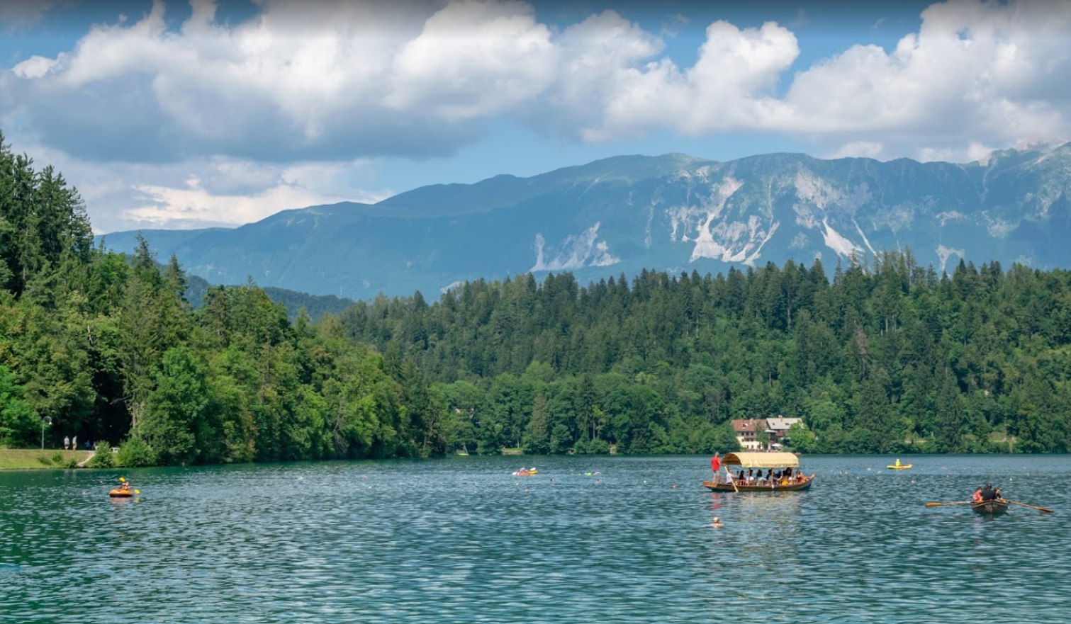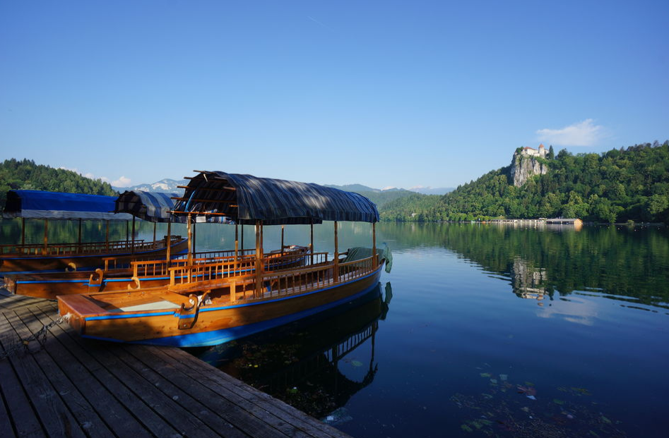 전통적인 '플렛 나 (Pletna)'보트를 타고 블레드 섬으로 갑니다.