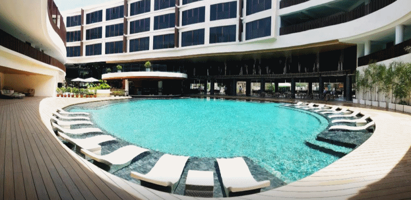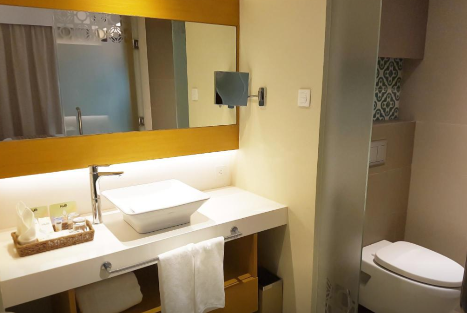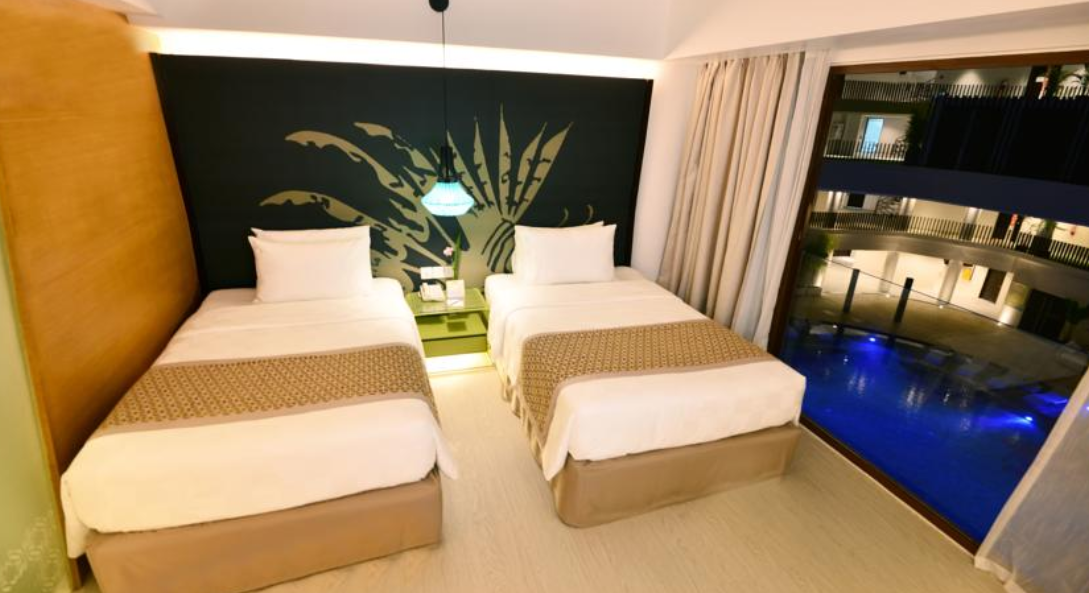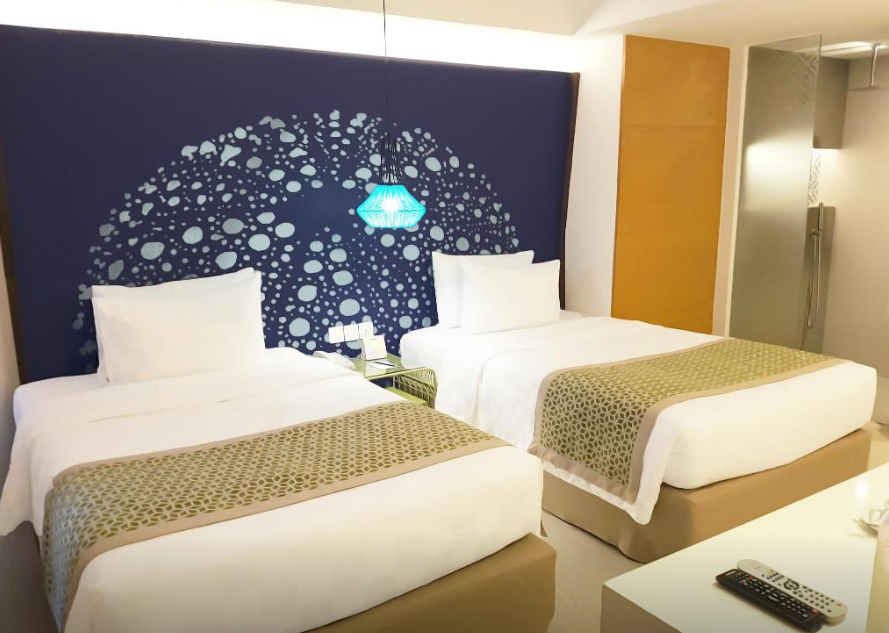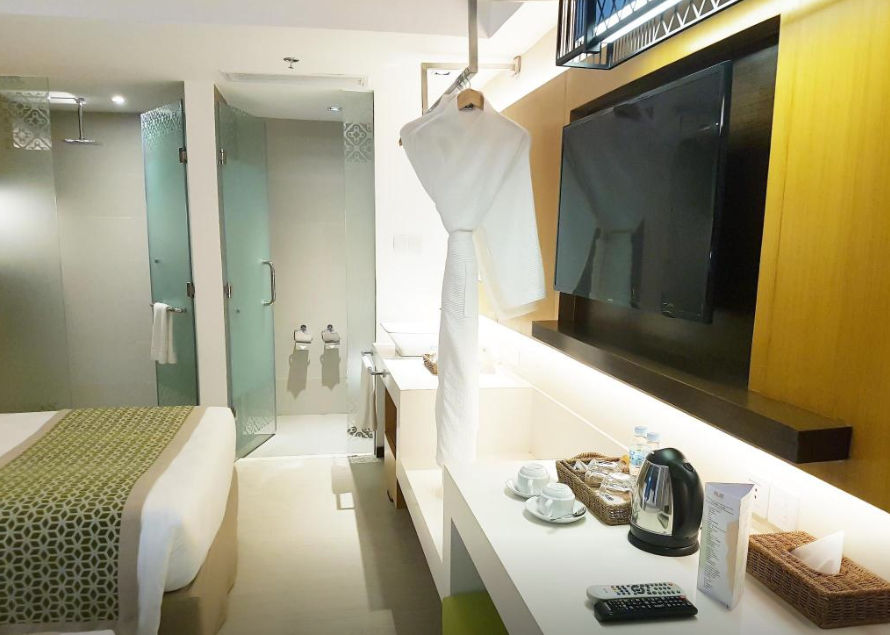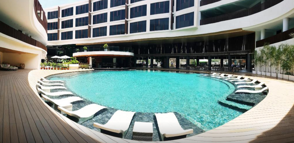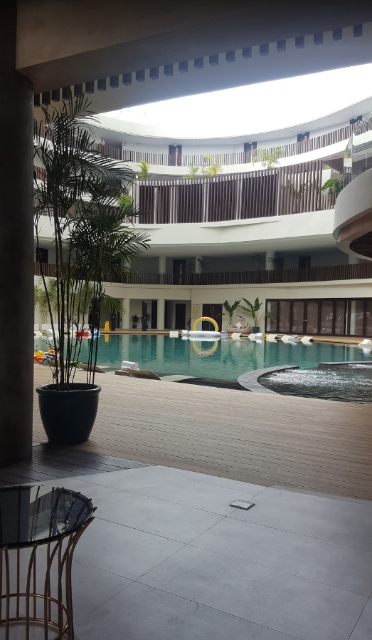 수영장도 크고 헬스장도 있고 리조트가 신설이라 깨끗합니다. 패밀리룸에서 지냈는데 더블 베드 1개에 싱글 베드 2개라 4인 가족이 묵기 정말 편했어요. 스테이션x에 편의점이랑 식당도 많아 편합니다. 숙소 바로 건너편에 있는 마사지샵도 좋았어요. 디몰까지는 걸을만하지만 가깝지는 않아요. 그리고 키가 자주 먹통이 돼서 로비에 몇번가서 리셋해야 했어요. 가격대비 아주 만족스러운 호텔이에요