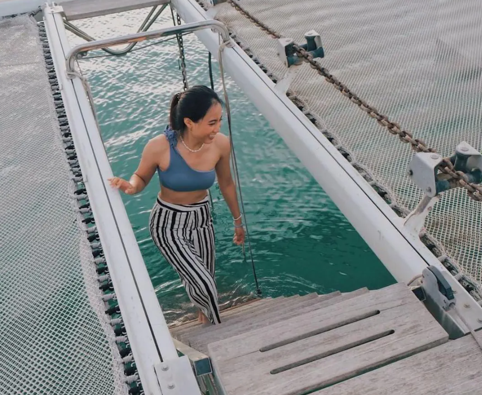 투어는 아침 일찍 시작되어, 카타마란에 올라서면 우선적으로 느껴지는 것은 바다의 상쾌한 공기와 함께하는 평온한 분위기입니다. 카타마란은 넓은 데크와 편안한 좌석을 갖추고 있어 가족 단위나 친구들과 함께 여유롭게 앉아 바다를 감상할 수 있습니다. 전문적인 승무원들이 친절하게 서비스를 제공하여 여행의 시작부터 끝까지 편안함을 느낄 수 있습니다.