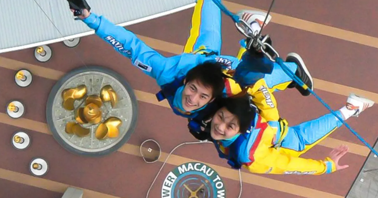 마카오에서만 경험할 수 있는 서있는 자세 그대로 점프하는 짜릿한 액티비티 마카오타워 스카이점프
