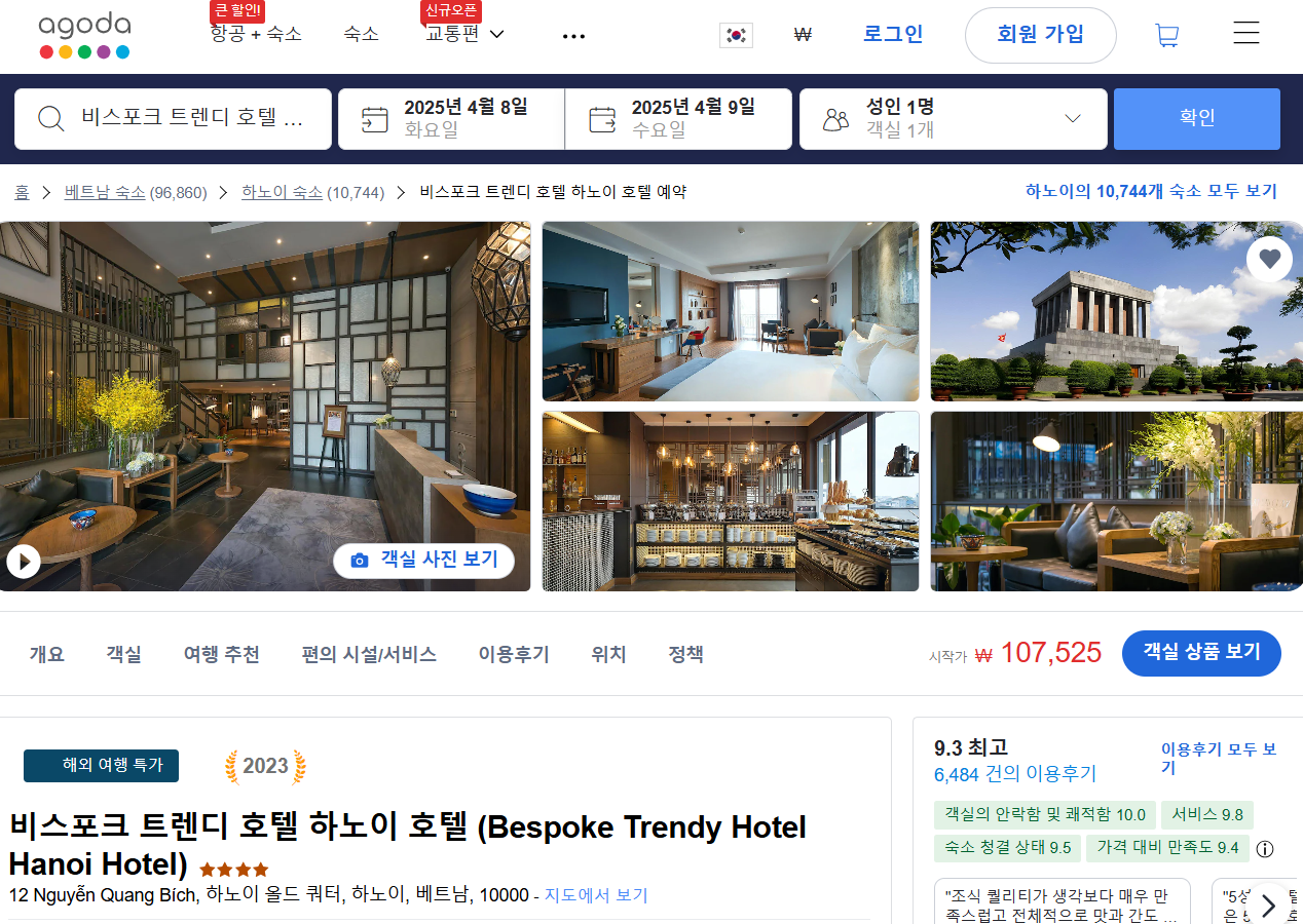비스포크 트렌디 호텔 하노이 호텔 (Bespoke Trendy Hotel Hanoi Hotel)의 1박당 요금 최저 가격대(세금 및 봉사료 포함)는 아고다에서 할인특가 가격으로 매일매일 변동되며 평균 10만원대부터 다양하게 형성됩니다. 아고다 최저가를 확인하시려면 아래 링크를 누르시면 원하는 날짜의 가격대를 자세히 보실 수 있습니다.
