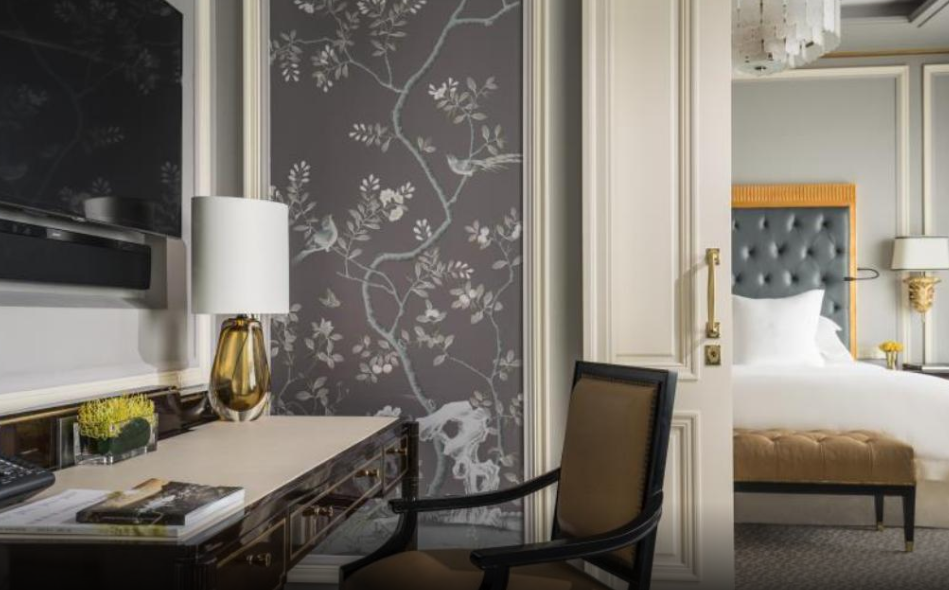훌륭한 인테리어 디자인을 갖춘 호텔 객실”(번역)