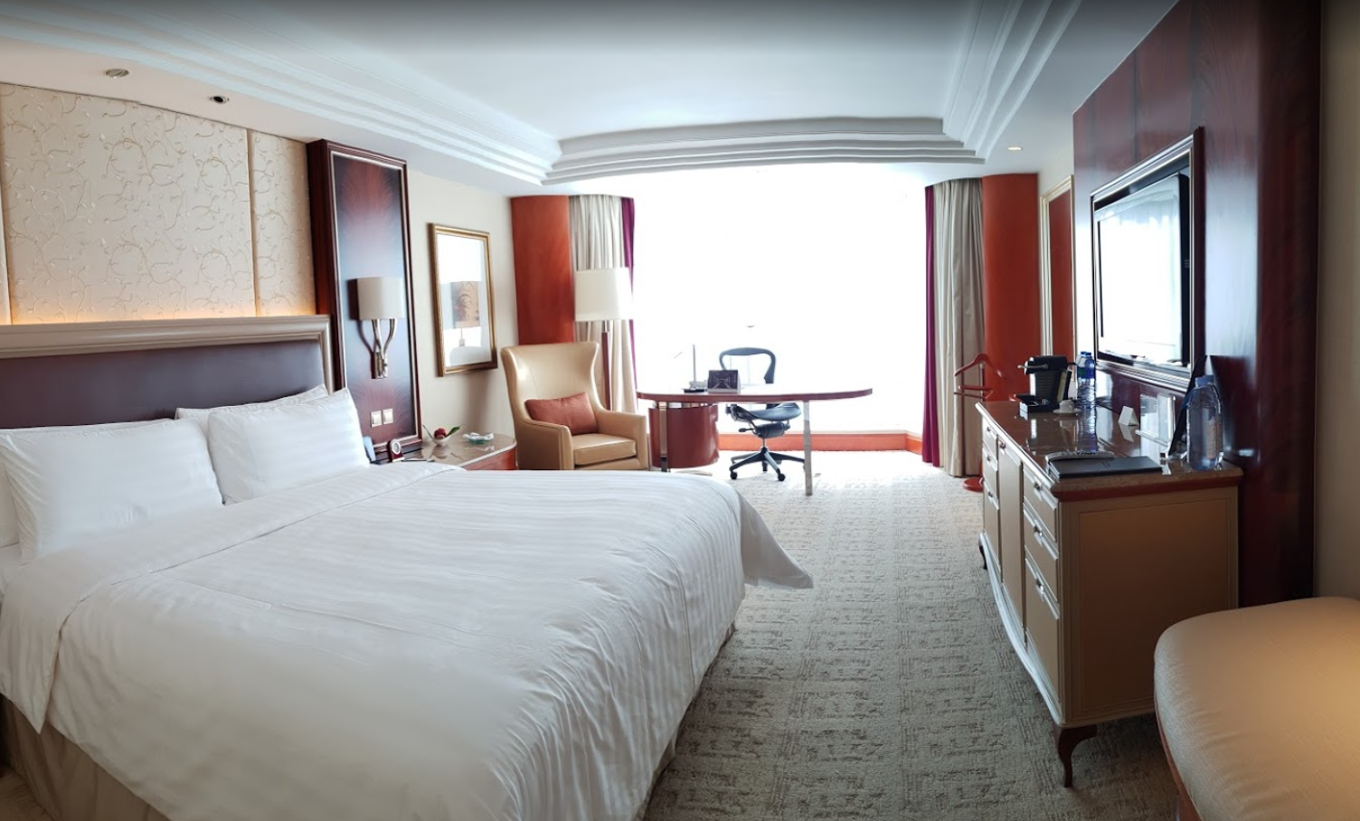 처음 체크인해서 방을 배정받고, 화장실 욕조 여부 등으로 2번 방을 바꿨으나, 끝까지 친절히 조치해 줌. 직원 태도에서 진실함이 느껴짐. 하루 2번 룸 청소도 만족함. 방 내부 넓직하고, 깨끗하고, 청소 상태 좋고, 고급스러움. 아침 조식, 음식 종류가 아주 많지는 않지만, 대부분 훌륭하고, 빵도 식사빵, 크로와상등 좋류와 질이 좋고, 몇 가지 딤섬과 즉석 조리하는 오믈렛도 훌륭했슴. 과일과 치즈도 만족스러움. 아이스크림이 하겐다즈로 여러 종류를 맛 볼 수 있고, 특히 블랙 커피를 보온병에 담아 주어, 여러 잔을 마실 수 있어서 좋았고, 커피 맛도 훌륭했슴. 아시아의 다른 샹그릴라 보다 한 단계 위라고 느껴짐.