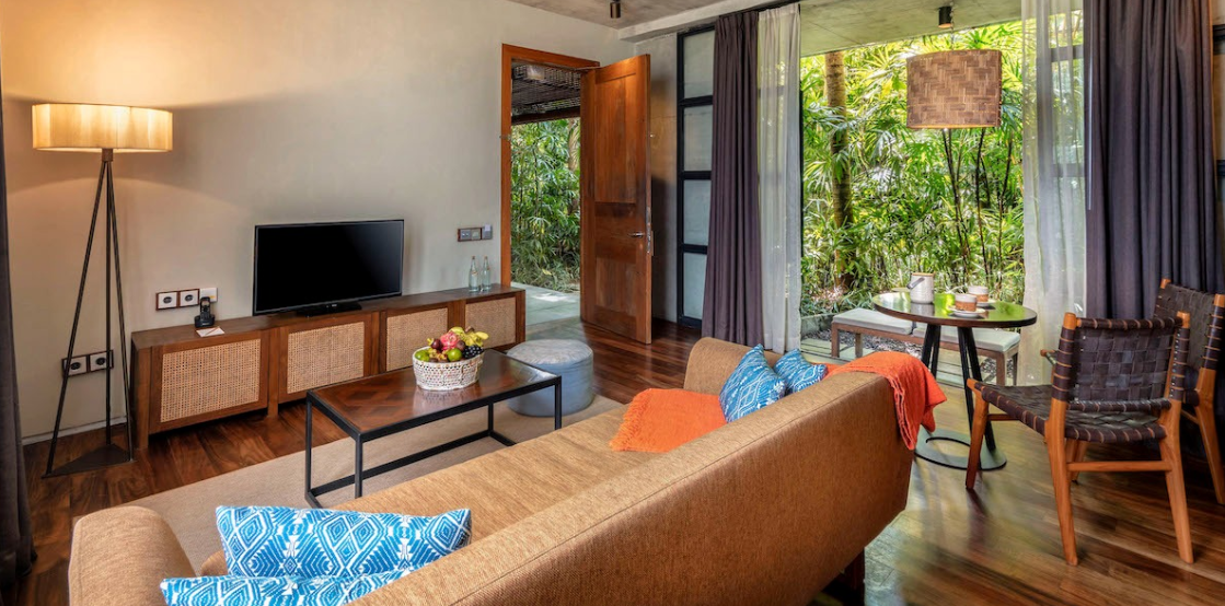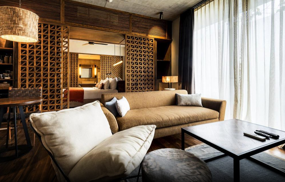 호텔에 들어서면 넓고 아늑한 로비가 반겨주고, 곳곳에 배치된 발리 전통 예술작품들이 눈길을 사로잡아요. 객실은 현대적인 디자인과 발리의 전통적인 요소가 잘 어우러져 있어서, 정말 편안하고 특별한 느낌을 줍니다. 특히 개인 발코니에서 바라보는 자연경관은 아침을 여는 데 더없이 좋은 경험이에요.