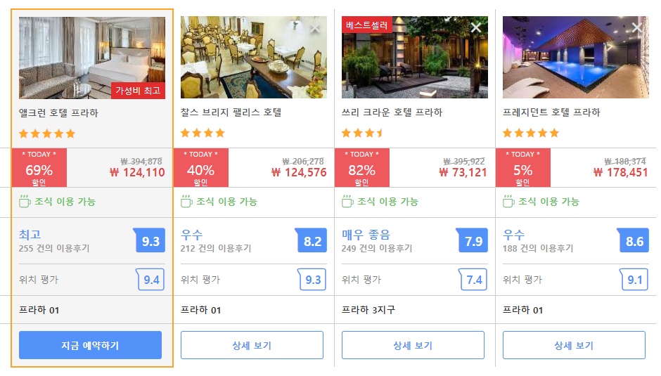 알마낙 X 알크론 프라하 (Almanac X Alcron Prague) 호텔의 최저 가격대는 아고다에서 할인특가 가격으로 매일매일 변동되며 20만원대부터 다양하게 형성됩니다. 아고다 최저가를 확인하시려면 아래 링크를 누르시면 원하는 날짜의 가격대를 자세히 보실 수 있습니다.
