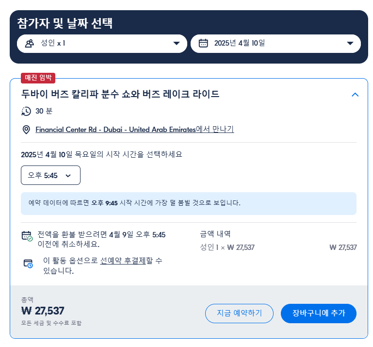 #두바이분수쇼정보 #부르즈레이크라이드예약