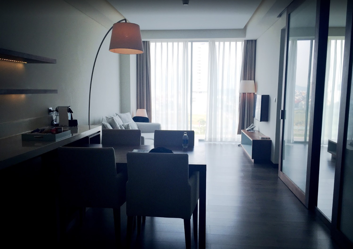 호텔 이용에 불편함이 없이 좋았습니다. 2베드 이그제큐티브 스위트룸 으로 사용 해서 가족과 함께 이용할수 있어서 좋았고 미케비치 앞에 위치한 호텔에 코코베이 투어버스 정거장도 가까이 위치하고 주말이라 밤에는 해변 공연도 룸에서 볼수있어 마치 해운대에서 숙박하는 느낌을 받았습니다.조식도 맛있었고 신선한 과일을 바로 다듬어 준비해 주어 즐거운 아침 식사를 할수 있었습니다. 단지 루프탑 수영장은 물 높이가 중간인 곳이 없어 조금 아쉬웠지만 대체로 만족스러웠어요