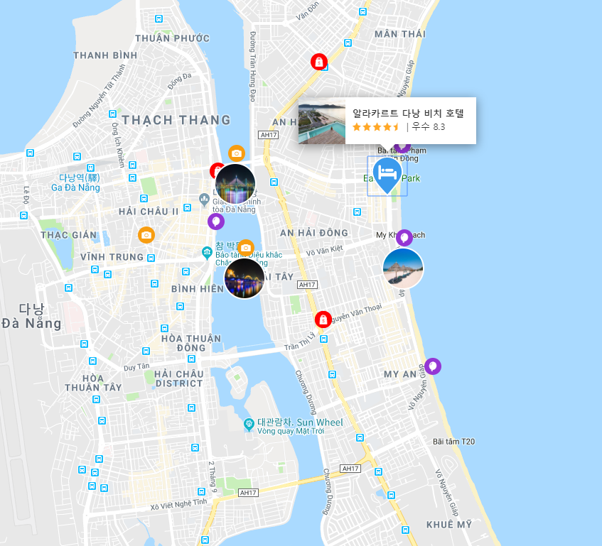 다낭을 여행하며 한적하고 프라이빗 비치가 있는 리조트보다 다낭시내도 구경하고 현지시장, 카페 등 시내 관광위주로 여행을 생각하시면 좋은 위치의 노보텔 다낭 프리미어 한