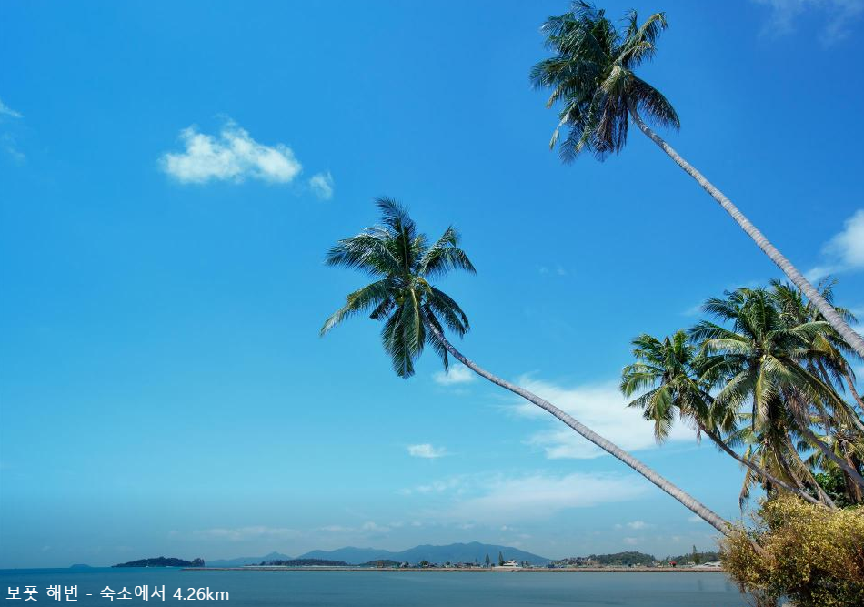 정말 위치가 좋습니다. 바로 옆 다라사무이 씨푸드 레스토랑 괜찮구요. 로컬 시장도 걸어서 3분 거리입니다. 해변을 끼고 있구요. 바다도 정말 이뻐요. 조식은 조식이라고 하기에 너무 푸짐하구요. 클럽 등 시내 걸어서 오분 거리입니다.