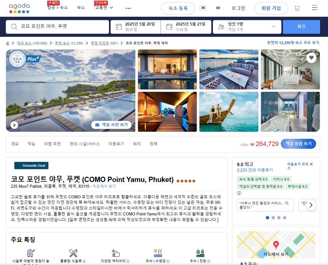 코모 포인트 야무(COMO Point Yamu, Phuket)는 푸켓의 북동쪽 해안에 위치한 정말 매력적인 리조트예요. 이곳은 전통 태국 건축과 현대적인 디자인이 멋지게 어우러져 있어서, 눈앞에 펼쳐지는 경치가 정말 환상적입니다. 특히, 앤다만 해를 바라보며 휴식을 취할 수 있는 위치가 아주 매력적이죠.