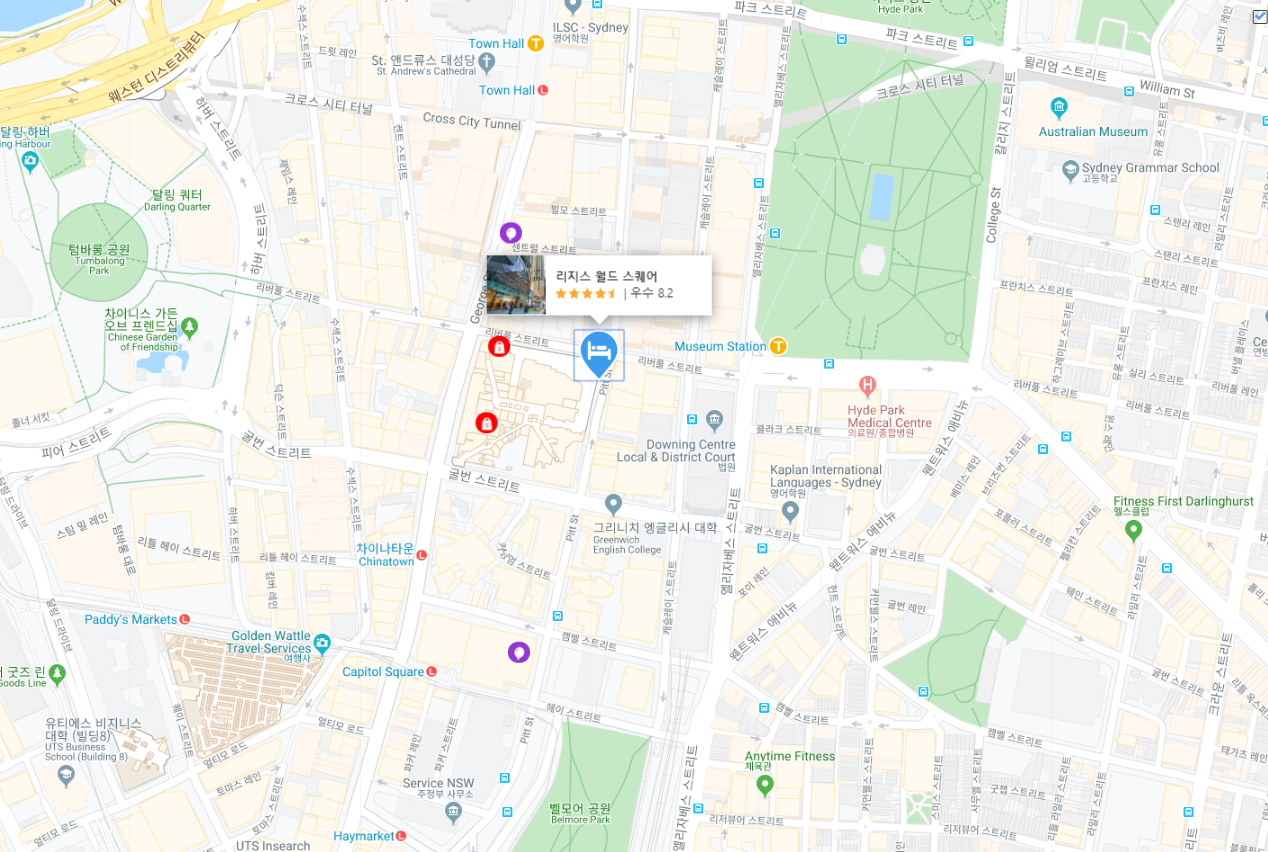 시드니의 시내의 도보여행하기 좋은 위치를 자랑하는 시드니호텔 리지스 월드 스퀘어 (Rydges World Square)는 QVB, 달링하버까지 걸어갈 수 있는 거리에 지하철도 가깝고 월드스퀘어 쇼핑몰과 바로 붙어 있으며, 주변에 식당들도 많고, 번화한 곳에 위치해 있습니다. 객실도 깨끗하고 욕조도 있어 좋으며, 수영장, 사우나도 무료도 이용가능합니다. 직원분들도 친절하고 시드니여행하기 좋은 시드니시내호텔 리지스 월드 스퀘어 (Rydges World Square)입니다.