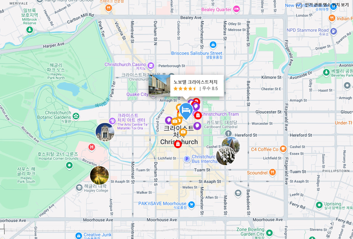 노보텔 크라이스트처치 (Novotel Christchurch) 호텔의 최저 가격대는아고다에서 할인 특가 격으로 매일매일 변동되며 비수기 최저가 10만원대부터 다양한게 형성됩니다. 아고다 최저가를 확인하시려면 아래 링크를 누르시면 원하는 날짜의 가격대를 자세히 보실 수 있습니다.