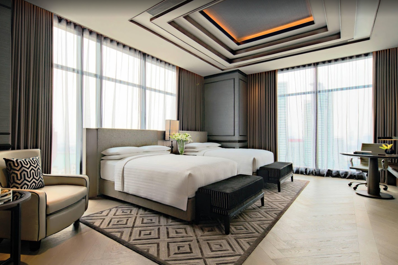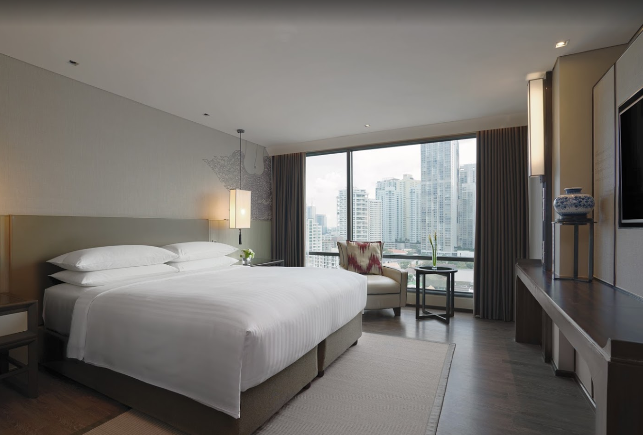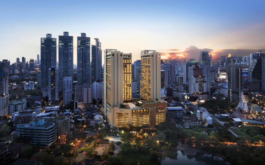 방콕 메리어트 마퀴스 퀸즈 파크 호텔 (Bangkok Marriott Marquis Queen’s Park)은 태국 방콕의 중심부에 자리잡고 있는 럭셔리 호텔로, 여행객과 비즈니스 고객 모두에게 최적의 선택지입니다. 이 호텔은 현대적인 디자인과 편안한 실내 공간을 자랑하며, 세련된 인테리어와 고급스러운 가구가 어우러져 편안한 분위기를 제공합니다.