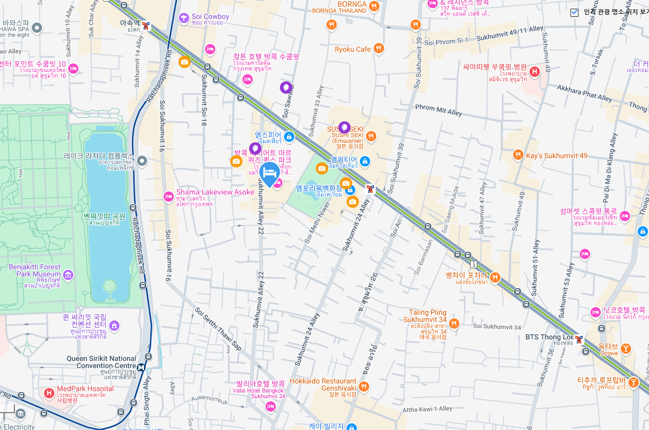 가족 여행으로 묵으신다면 , 추천 드립니다 . 커플여행또한 좋을것 같습니다 . 저는 고층을 이용했고 , 뷰가 너무 이뻐서 자고 일어날때 기분이 너무 좋았습니다 . 가격대비 - 다른 5성급 호텔과 비교했을때 나쁘지 않은 가격입니다 . 몇만원 비싼 거라면 , 이곳을 추천해 드립니다 . 소중한 사람과의 여행이라면 , 여행의 기분을 한층 더 업그레이드 해 줄 것입니다 . 위치 - 지하철을 이용시에는 도보 5 분이상 걸어야하지만 , 파크 안쪽을 걸어가면 , 운동되고 좋습니다 . 그보다 뚝뚝이나 택시를 이용을 많이하게되어 굳이 젊은 여행자가 아니라면 , 불편한 점이 없었습니다 . 숙소위생상태 - 기존의 선진국들의 호텔보다는 다소 떨어지지만 , 메이트들이 나이가 있는 분들이 다수이기에 감안 하셔서 컴플레인은 걸지 않으시면 좋겠습니다 . 방에서 냄새가 나서 룸스프레이를 가져다달라 하니 , 바로 와 주셨습니다 . 직원태도 - 방콕에서의 세번째 숙소 중 다 5 성급이었지만 , 단체 여행객들이 많아 그런지 , 서비스는 호텔에 도착함과 동시에 우월하다는걸 알 수 있습니다 . 호텔이면 , 이정도의 서비스를 해야한다고 생각합니다 . 숙소편의 / 부대시설 - 로비가 이미 들어서는 순간 기분을 좋게 만듭니다 . 로비의 카페가 좋아요 ㅡ 도착해서 에프터눈티를 마셨는데 , 나중에는 조식에 나오는 메뉴에서도 찾아 볼 수 있을 정도로 조식이 잘나옵니다 . 종류가 다양하여 좋습니다 . 채식단과 비건 베이커리가 있어 , 좋습니다 . 야간에는 야간뷰를 볼 수 있는 루프탑 Abar 를 추천합니다 . 수영장은 2 군데 4 층 9 층에 있지만 하나씩 리모델링 중이라 현재 한군데만 사용 가능합니다 . 애기들이 놀기 좋은 수영장 입니다 !! :) 룸은 디럭스 여서 그런지 2 명이서 쓰기에는 살짝 좁은감이 있지만 , 저는 혼자 사용하여 전혀 불편한 점이 없었습니다 . 방콕에서의 여행이 호텔로 더 좋아진 것 같습니다 . 감사합니다 ^^