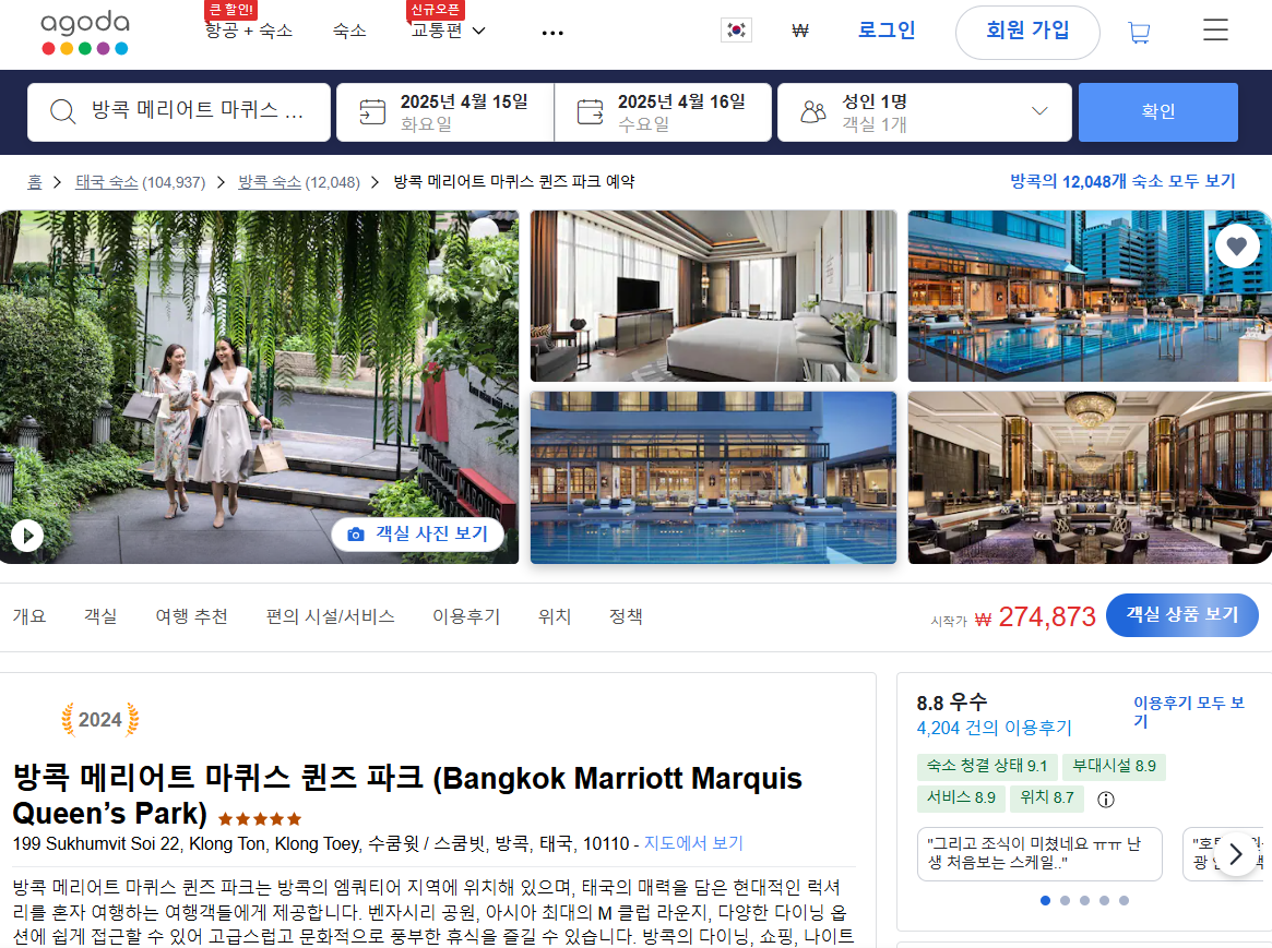 방콕 메리어트 마퀴스 퀸즈 파크 호텔 정보