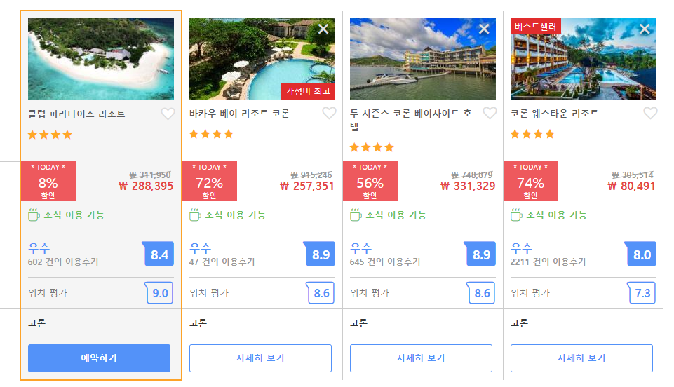 여자친구와 2박으로 갔었는데, 너무 환상적이었다. 직원들도 너무 친절하게 대해주었다. 영어를 못하면 고생할 수 있으니 참고할 것. 섬이라는 특성때문에 불편한 점도 없지 않아있지만, 그정도는 감수 할만하다. 음식값이 비싸다고 여겨질 수 있으나, 상대적으로 한국보다는 싸다. 주류 및 음료를 좋아하는 사람은 미리 코론공항에서 사서 가면 돈을 절약할 수 있을 것 같다.