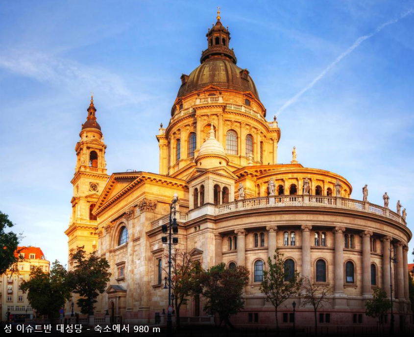 위치도 정말 좋아서 주요 관광지들이 가까워요. 영웅광장, 시티 파크, 성 이슈트반 대성당 같은 명소들이 도보 거리 안에 있어 부다페스트의 매력을 쉽게 즐길 수 있죠. 다뉴브 강변 산책도 바로 할 수 있고, 공항과도 연결이 잘 되어 있어서 여행이나 비즈니스 모두 편리합니다.