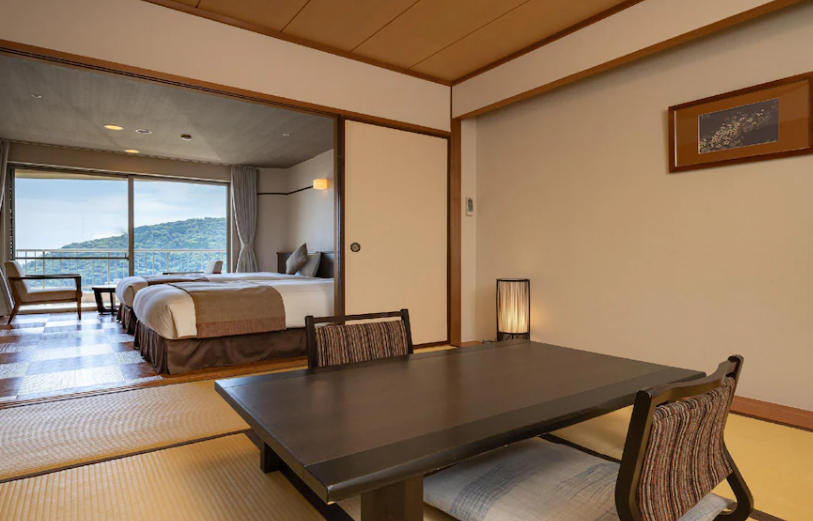 객실도 참 다양하고 아늑해요. 전통적인 일본 다다미 방부터 현대적인 서양식 방까지 골라서 묵을 수 있는데, 어느 방에서든 바다 풍경이 멋지게 펼쳐져서 눈이 즐거워요. 일부 객실에는 개인 온천탕이 딸려 있어서 프라이빗하게 온천을 즐기고 싶은 분들에게 딱이죠.