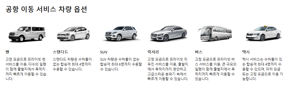 세단 (1-3인): 최대 28인치 수하물 1개 + 24인치 수하물 2개