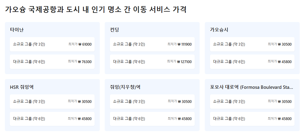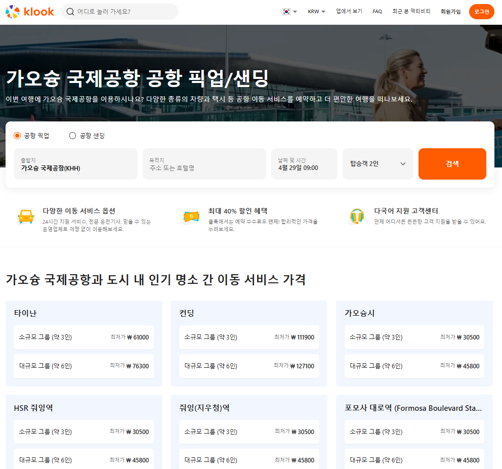 타이난여행 / 가오슝공항에서 타이난으로 이동하는 교통편(공항 차량 픽업 샌딩서비스)