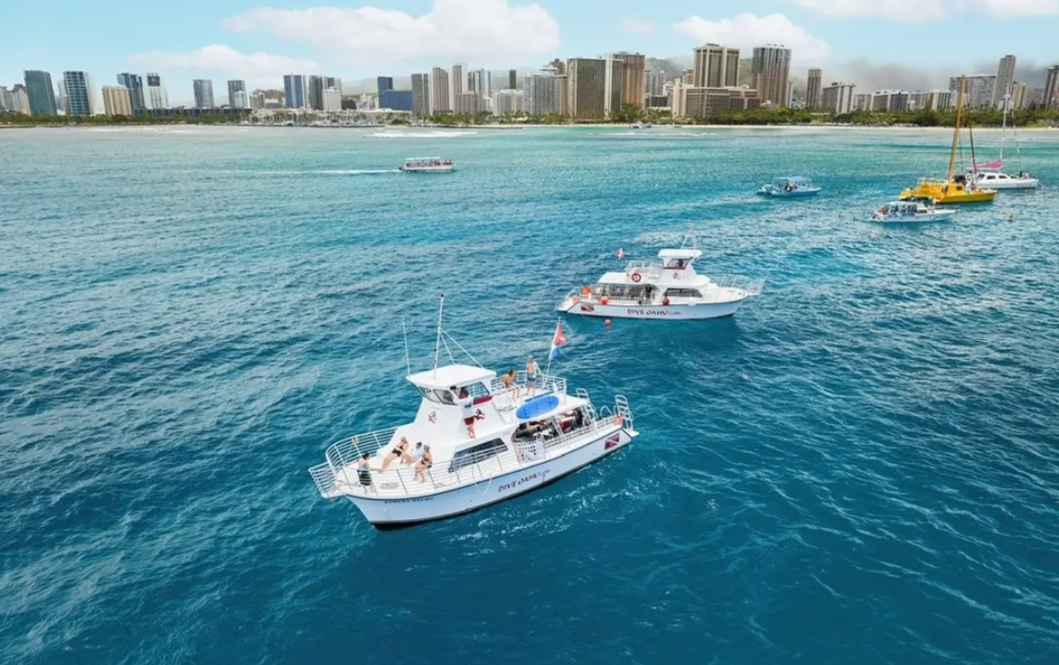 다이브 오아후(Dive Oahu)의 전세 보트에 탑승하여 스낵, 다과, 햇빛과 그늘진 데크, 넓은 공간, 선상 화장실 등이 완비된 보트를 즐겨보세요. 가이드가 다이빙 장소, 수질 상태, 해양 생물에 대해 간략히 설명할 것입니다.