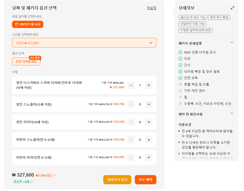 - 특별한 경험을 위해 제공되는 최고의 스쿠버 장비, 가벼운 스낵, 다과를 즐겨보세요.