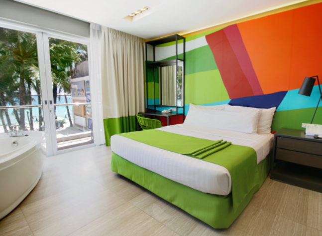 보라카이여행에 추천하는 호텔로 헬스장과 수영장과 같은 괜찮은 시설과 구내 레스토랑, 비건 식품 매장(Nonies) 및 선물 가게와 같은 편의 시설이 잘되어 있는 휴 호텔스 앤 리