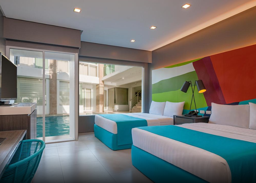 친구들이랑 놀러가는거라 다인승이 되는 곳이 필요했고요 그런측면에서는 가격대비 좋았습니다. 다만 방의 크기는 좀 작은 편이었고요 디몰에서 도보로 1분거리라 좋은점도 있었지만, 삐끼가 호텔 왔다갔다 할때마다 잡는다는점이 최악이었고 비치가 리젠시나 우노보다는 별로였습니다. 대신 수영장 거의 전세내듯이 있었고 특이하게 다른호텔과 달리 옷을 입고 들어가도 딱히 제지를 안해서 재밌게 놀았습니다. 직원들도 친절했고... 아. 다만 모기 좀 많고 와이파이가 썩 시원찮았어요