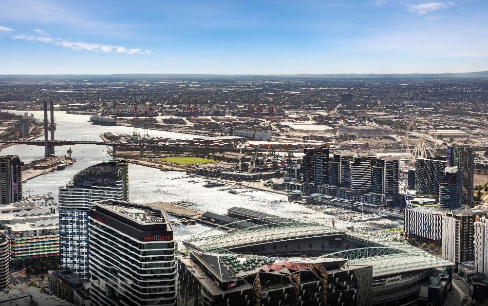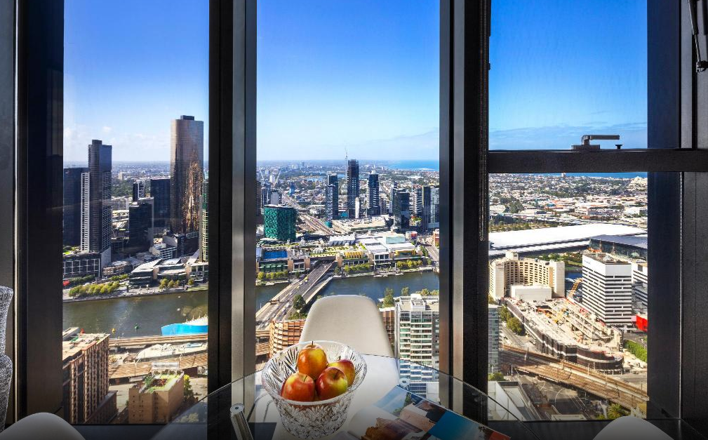 침대에서 멜번스타가 보이는 40층 아파트먼트”