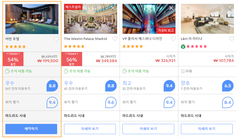 신혼여행으로 처음 방문함 스페인의 숙소였는데 친절한 직원들과 객실 준비 상태 등에 매우 만족합니다. 솔광장에서 5분정도 떨어진 거리에 위치하여 위치도 아주 좋습니다. 강추합니다.