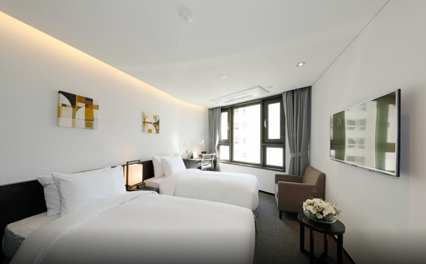 마곡역에서 도보로 가까운 위치인데, 호텔 로비를 찾기가 어려웠습니다. 일반적인 호텔 로비로 생각하면 안되고, 상가건물 유심히 봐야합니다. 아기랑 같이 가서~ 패밀리 트윈에서 투숙했는데, 더블침대가 벽쪽으로 붙어있어서 안전하게 잘수 있었던것 같아요~ 객실은 깨끗한편이었고, 샴푸등등 어메니티는 벾에 부착되어 있어요~ *심 스틱커피도 있었습니다. ㅋㅋㅋ 중국단체들이 많이 묶는편이었고, 그팀들 복도 지나가면 시끄러워져요~ 체크인시 프론트는 친절한 편이었고, 체크아웃시 프론트는 키를 반납하든 말든.. 무관심한편이었습니다. 가격대비 만족합니다.