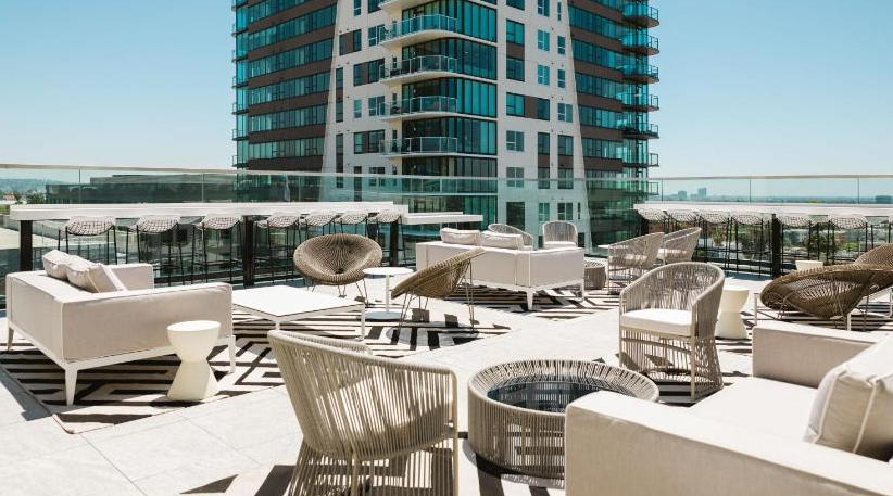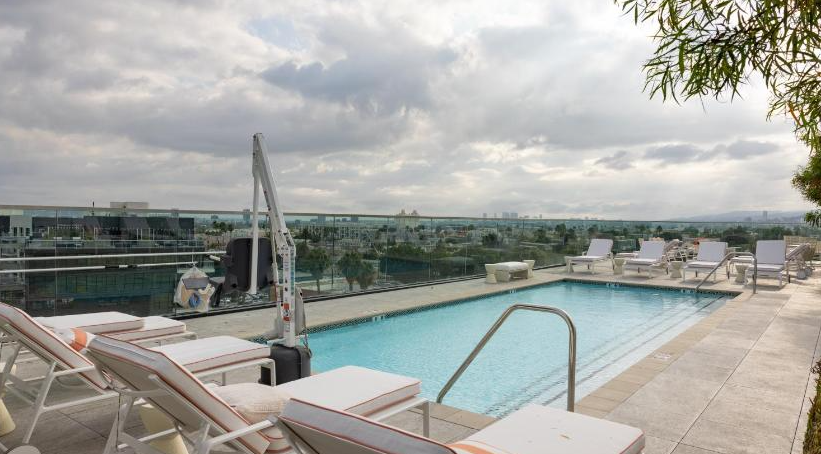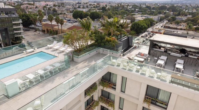 이곳의 하이라이트는 바로 아름다운 루프탑 수영장과 라운지예요. 할리우드부터 저 멀리 로스앤젤레스 시내까지 탁 트인 멋진 풍경을 바라보며 여유로운 시간을 보내기에 더없이 좋답니다. 호텔 안에는 맛있는 음식을 즐길 수 있는 레스토랑도 있고, 수영장 옆에는 편안하게 음료를 마실 수 있는 바도 마련되어 있어요.