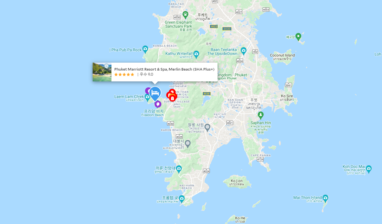 푸켓가족여행의 좋은 분위기와 시설의 푸켓 메리어트 리조트 앤 스파 멀린비치(Phuket Marriott Resort & Spa, Merlin Beach)는 Merlin Beach에 위치해 있는 푸켓리조트로 앞에 있는 바다에서 많은 물고기와 소라게를 만날 수 있는 곳으로 수영장에서 놀다가 비치에 나가서 놀 수 있어 더욱 좋은 환경을 자랑합니다.